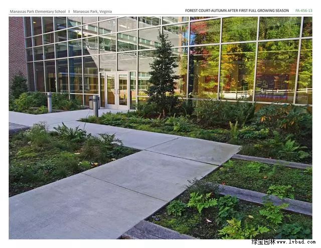 雨水花园的建造成本较低,且维护与管理比草坪简单。